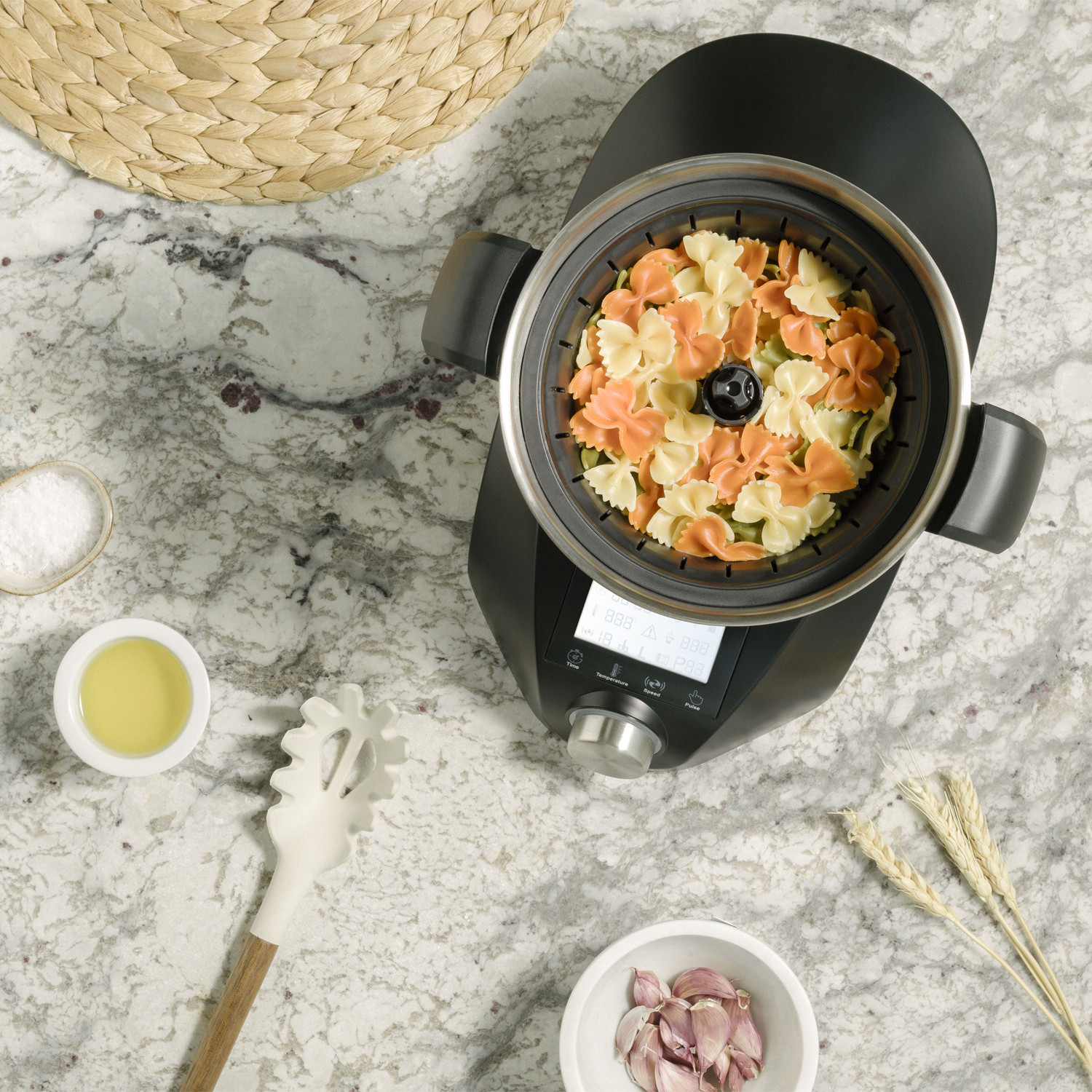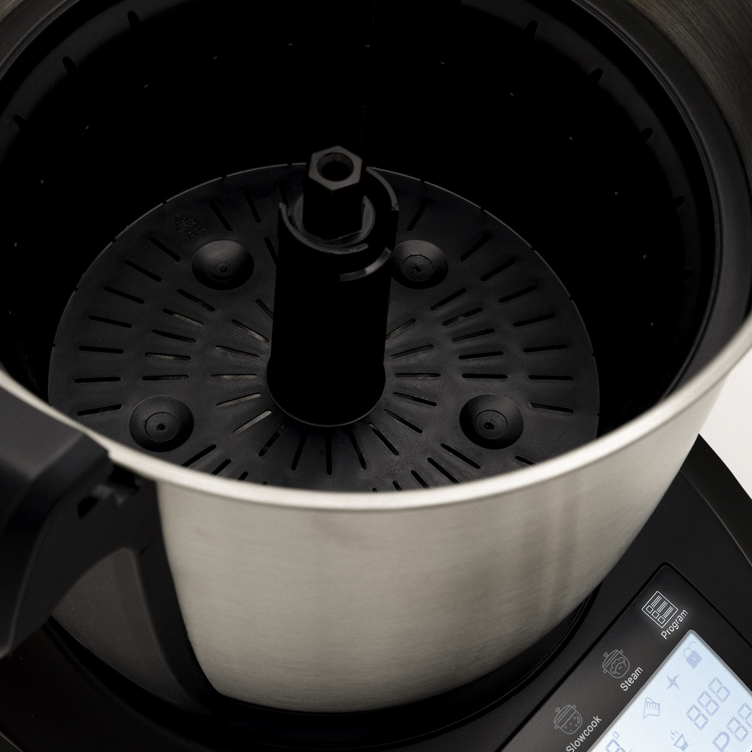 - 23 funzioni e opzioni di cottura al vostro servizio: cuocere, cuocere a bassa temperatura, soffriggere, macinare, tritare, bollire, cuocere a vapore in 3 livelli, mescolare lentamente senza rompere gli ingredienti, friggere, macinare, scaldare, impastare, assemblare, battere, emulsionare, tenere caldo, cuocere a bagnomaria, far bollire a fuoco lento, grattugiare, affettare e tritare. Ha anche una funzione Turbo. Come potete vedere, tutta la magia della cucina in un solo dispositivo.