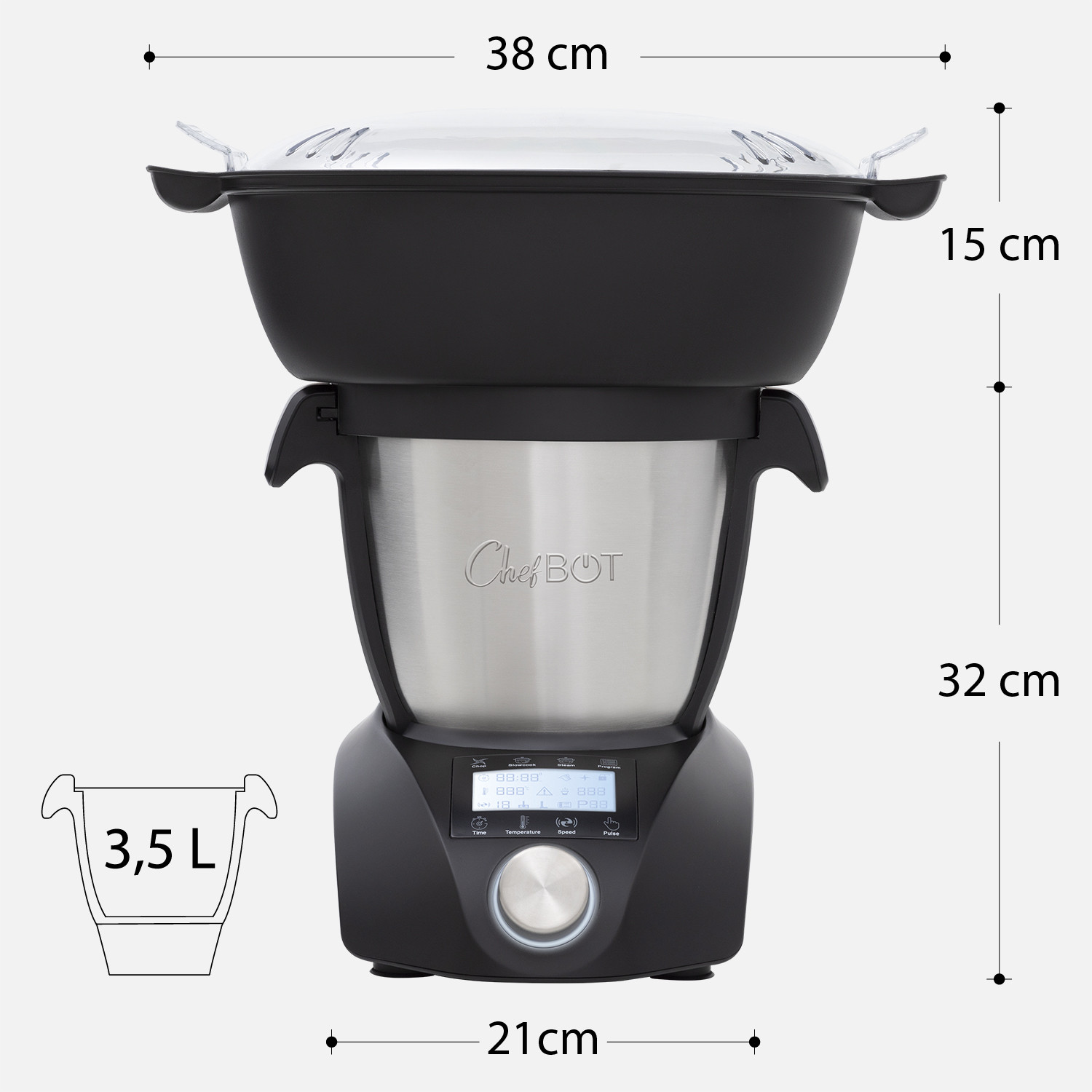 - Fino a 13 utensili da cucina in 1: CHEFBOT sostituisce una pentola, padella, thermos, frullatore, pentola a vapore, tritacarne, frullatore, cuociriso, impastatrice, grattugia, trituratore, macina caffè e macchina per lo yogurt. Risparmia tempo, denaro e spazio, non è più necessario utilizzare diversi strumenti per cucinare veloce e sano, il tuo robot da cucina compatto è pronto per tutto.