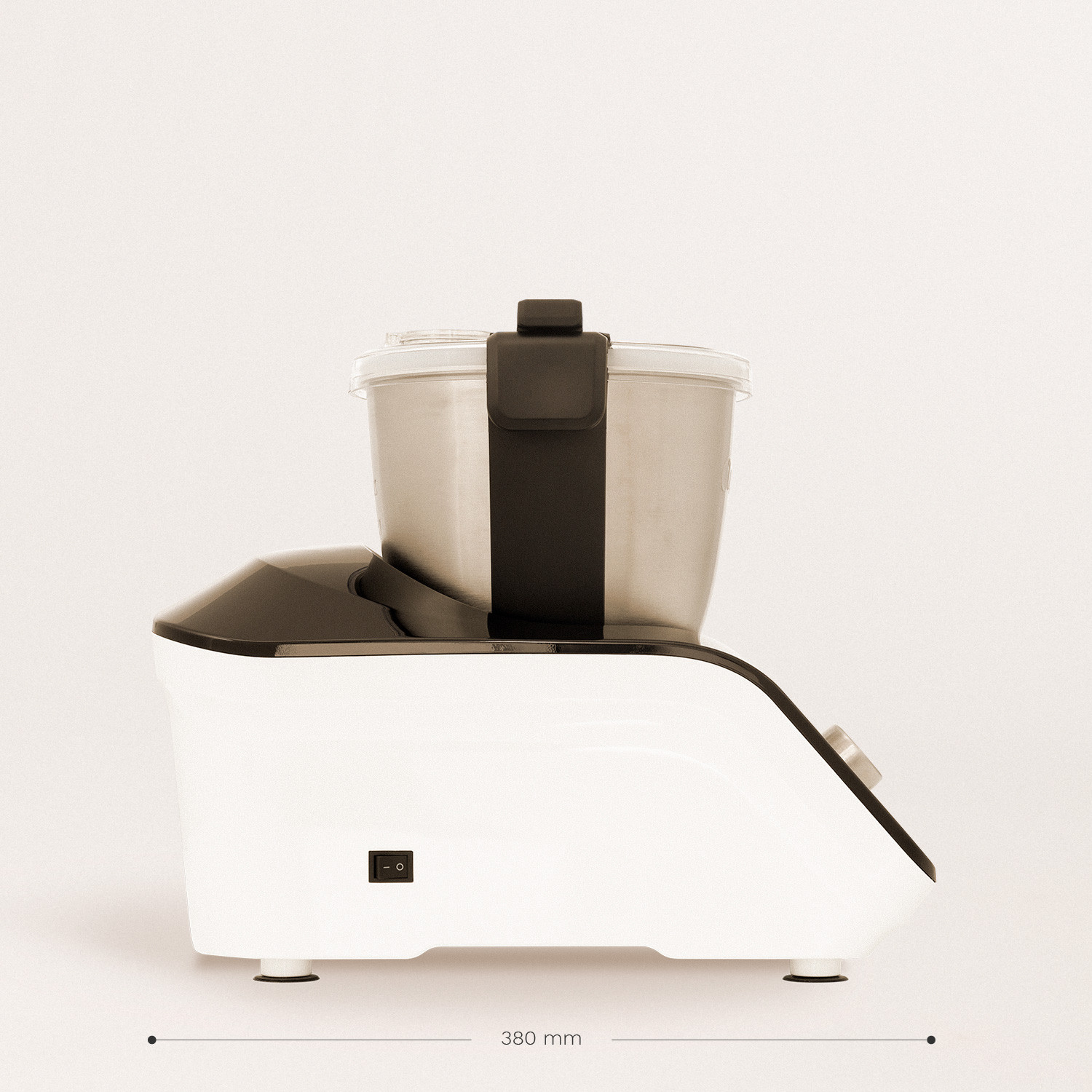 Transparant hermetisch deksel met een stoomuitlaatregelaar , zodat u op een veilige manier kunt zien wat u kookt en ingrediënten kunt toevoegen. De messen kunnen worden verwisseld zonder de kom te verwijderen. Aan / uit-knop aan de zijkant om onbedoeld uitschakelen te voorkomen