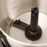 Met veiligheidsthermostaat : in geval van oververhitting stopt de chefbot om storingen te voorkomen. Door gewoon op de resetknop onder de kom te drukken, keert deze terug naar de normale werking als deze eenmaal is afgekoeld. Meer informatie in de handleiding