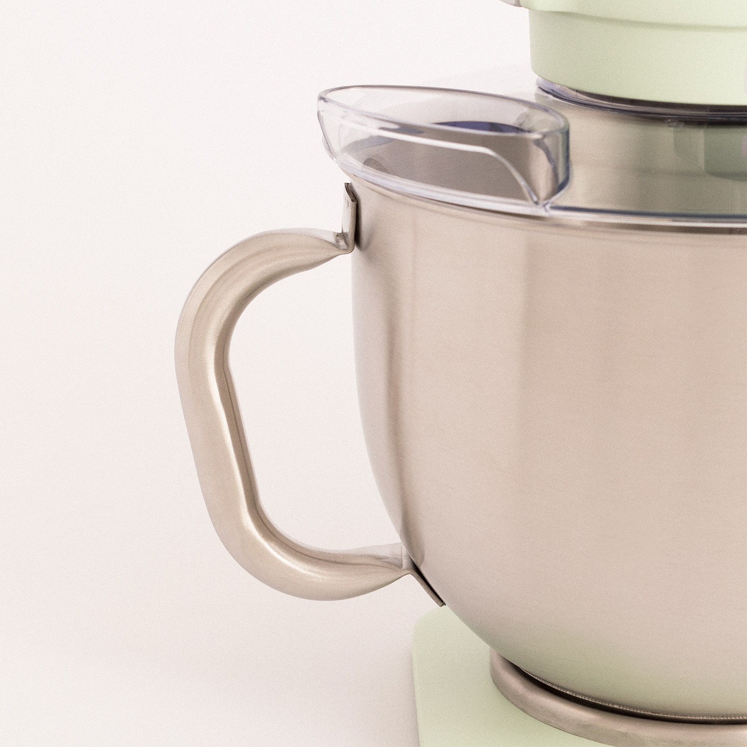 Retro, elegancki i praktyczny design. Bardzo łatwy w użyciu i czyszczeniu, dzięki obrotowi planet, automatycznym programom i różnym akcesoriom, które praktycznie zamieniają mikser w robot kuchenny. Bez problemu wymieszaj, mieszaj, emulguj, montuj. Miska ze stali nierdzewnej z uchwytem jest wyjmowana, aby pomóc Ci w przygotowaniach.