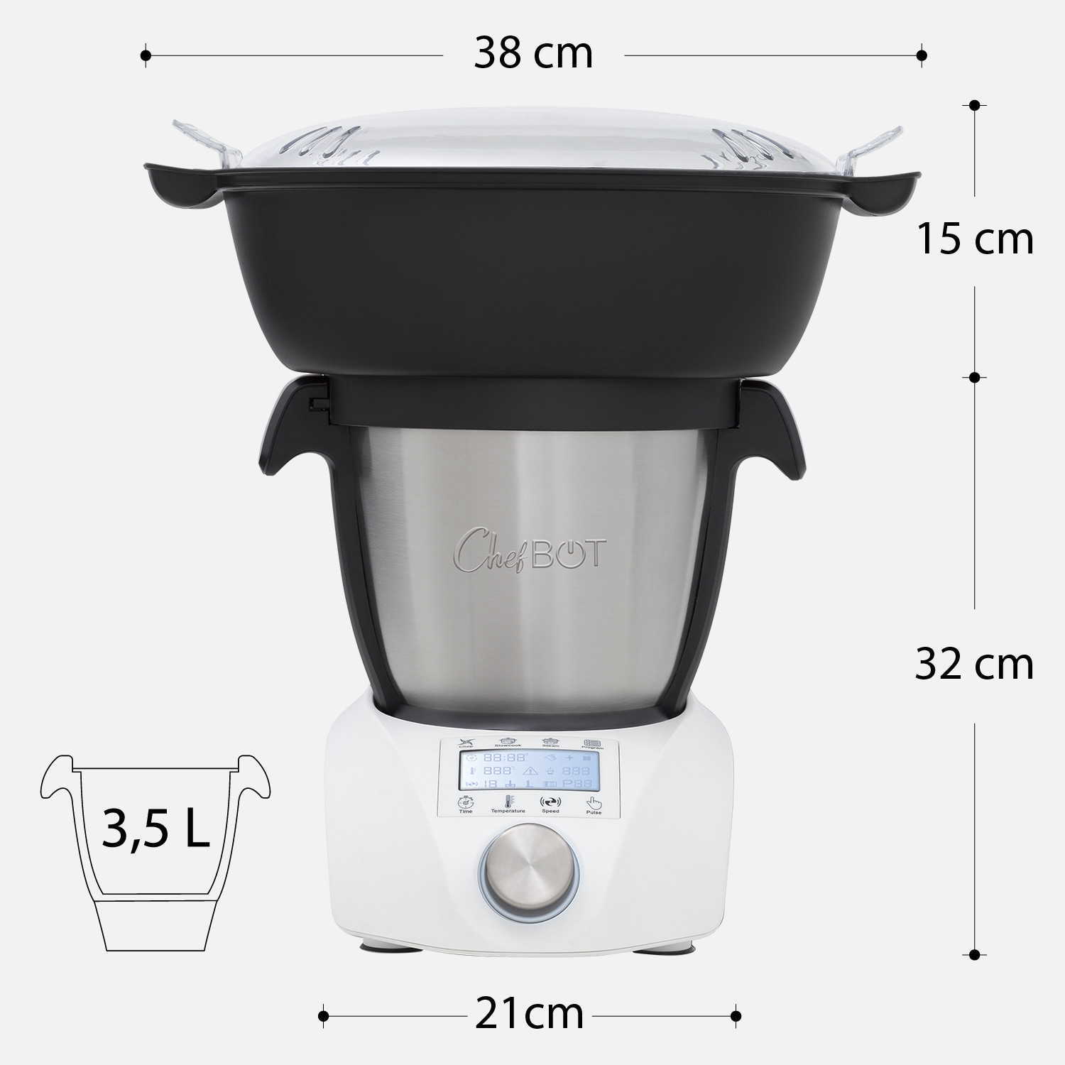 CHEFBOT COMPACT STEAMPRO ( com Cesta de Vapor) + Livro de Receitas - Robô Inteligente de Cozinha