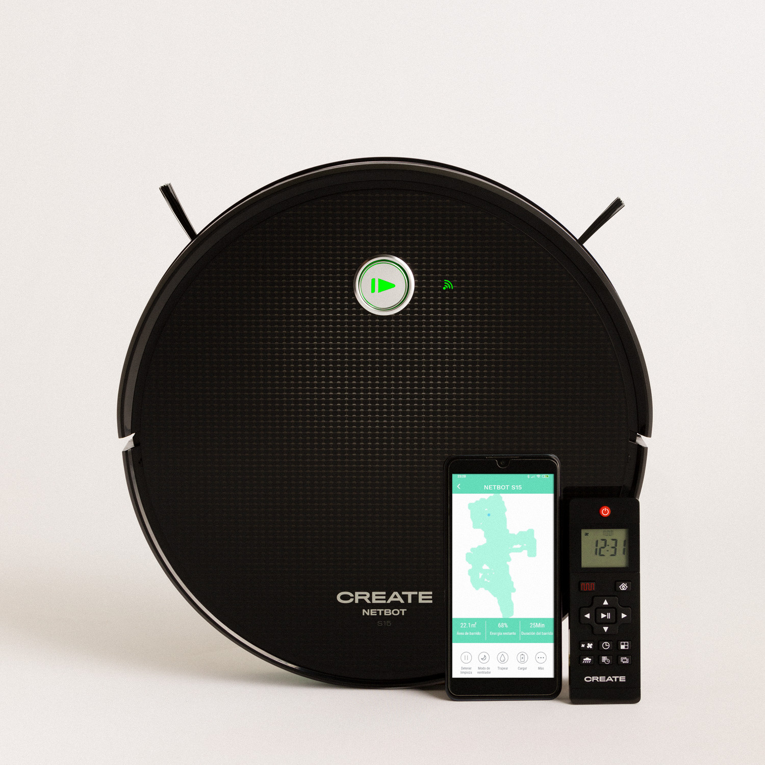 1 x NETBOT S15. Limpa e cuida o seu lar sem esforço com o novo robot aspirador inteligente. NETBOT S15 de IKOHS. Um robot inteligente que graças à sua inovadora tecnologia SmartGYROSCOPE funciona de maneira óptima em relação a outros aspiradores, uma vez que mapeia enquanto limpa deixando assim o seu lar limpo e reluzente. Graças ao seu desenho moderno e a umas prestações incríveis, o aspirador redondo NETBOT S15 converte-se na solução perfeita para manter a sua casa limpa e agradável, um robot esfrega chãos que tem 5 modos de limpeza. Além do mais pode-o programar fácilmente a partir da sua intuitiva APP graças ao seu WIFI compatível com ALEXA e Google HOME, ou a partir do seu confortável e prático comando à distância. Robot de limpeza que INCLUI PEÇAS DE REPOSIÇÃO: 1 pano, 1 filtro HEPA e 2 escovas laterais.