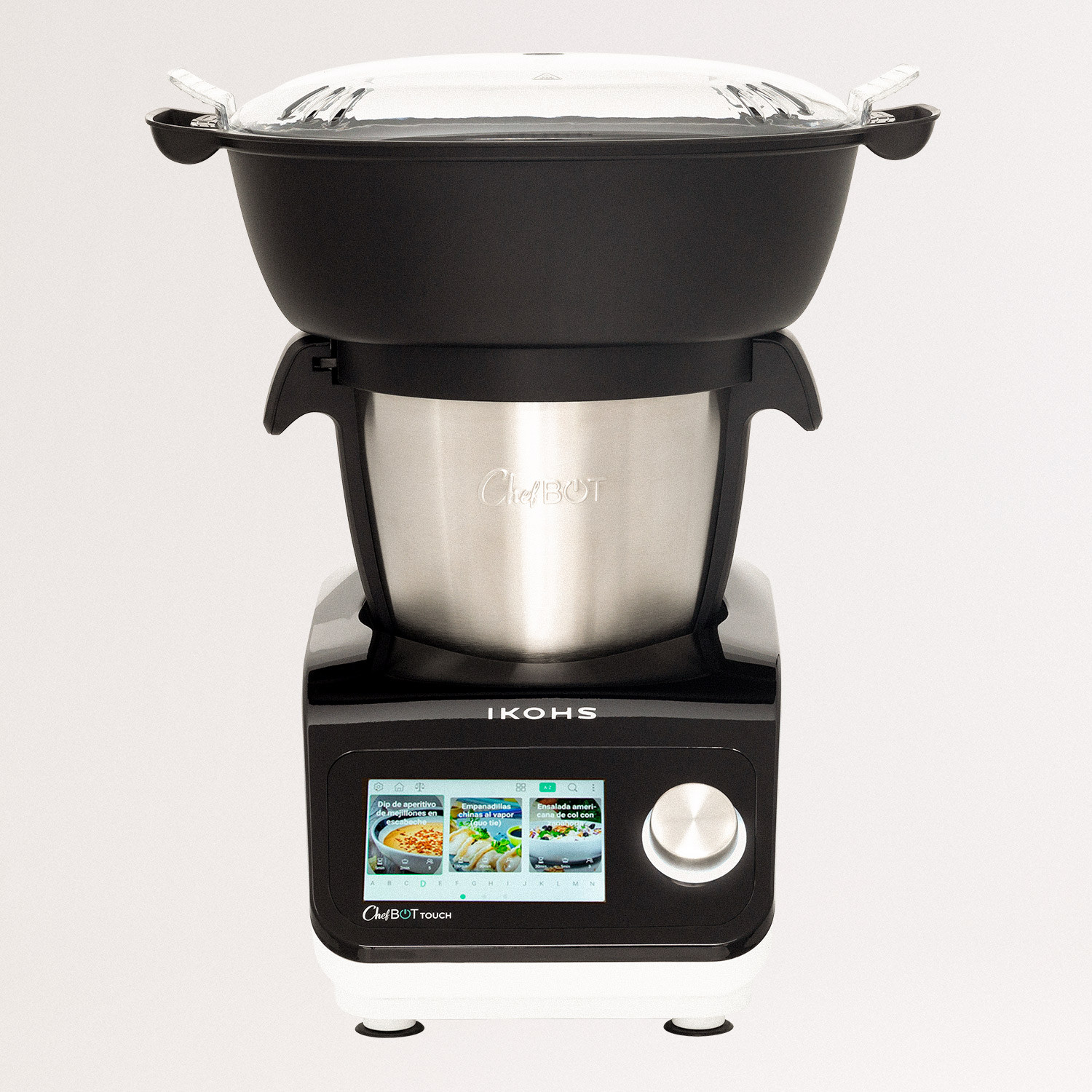 Esta tigela é válida para CHEFBOT COMPACT E CHEFBOT TOUCH. Tanto a tampa transparente como o cesto para vapor com três níveis de cozedura adaptam-se ao milímetro do recipiente.