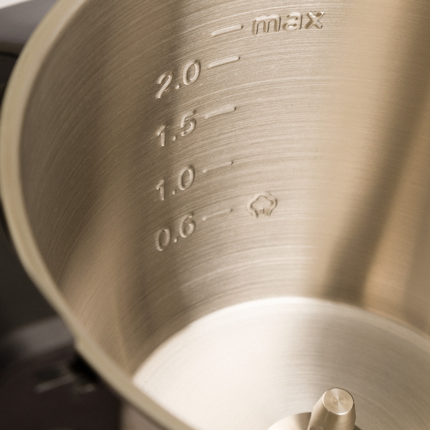 Tigela para robôs de cozinha CHEFBOT COMPACT e CHEFBOT TOUCH. Recipiente de aço inoxidável com capacidade total de 3,5L e 2,3L de capacidade de cozimento. Feito de materiais fortes e duráveis, foi projetado especificamente para se encaixar perfeitamente no processador de alimentos inteligente CEHFBOT.